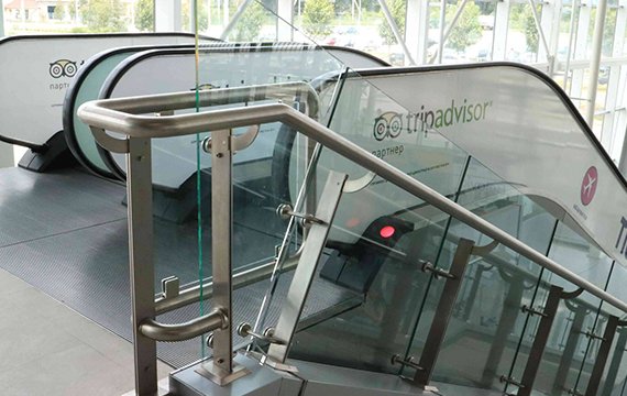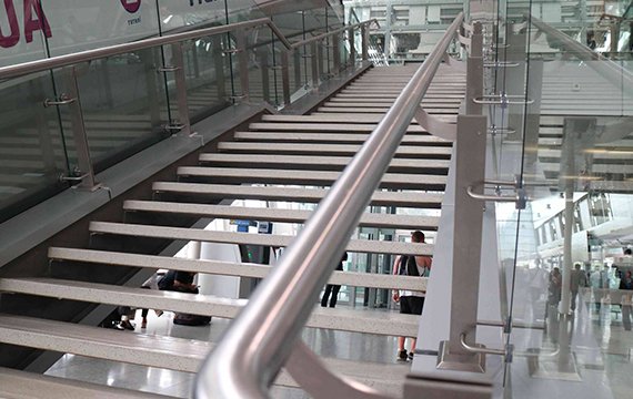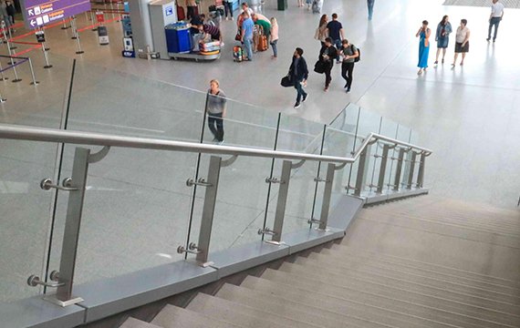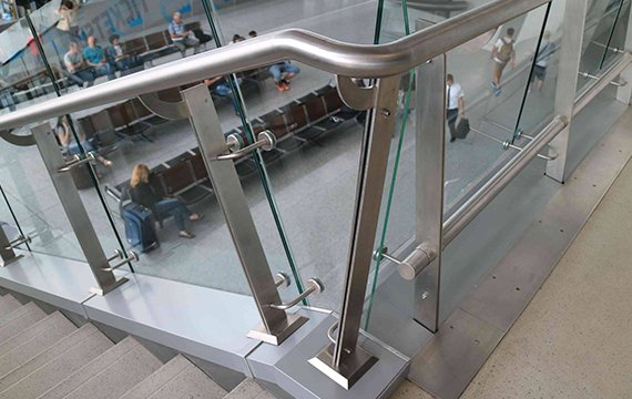 - Огородження з нержавіючої сталі з гартованим склом 8 + 8, в яких використані стійки з листового металу.